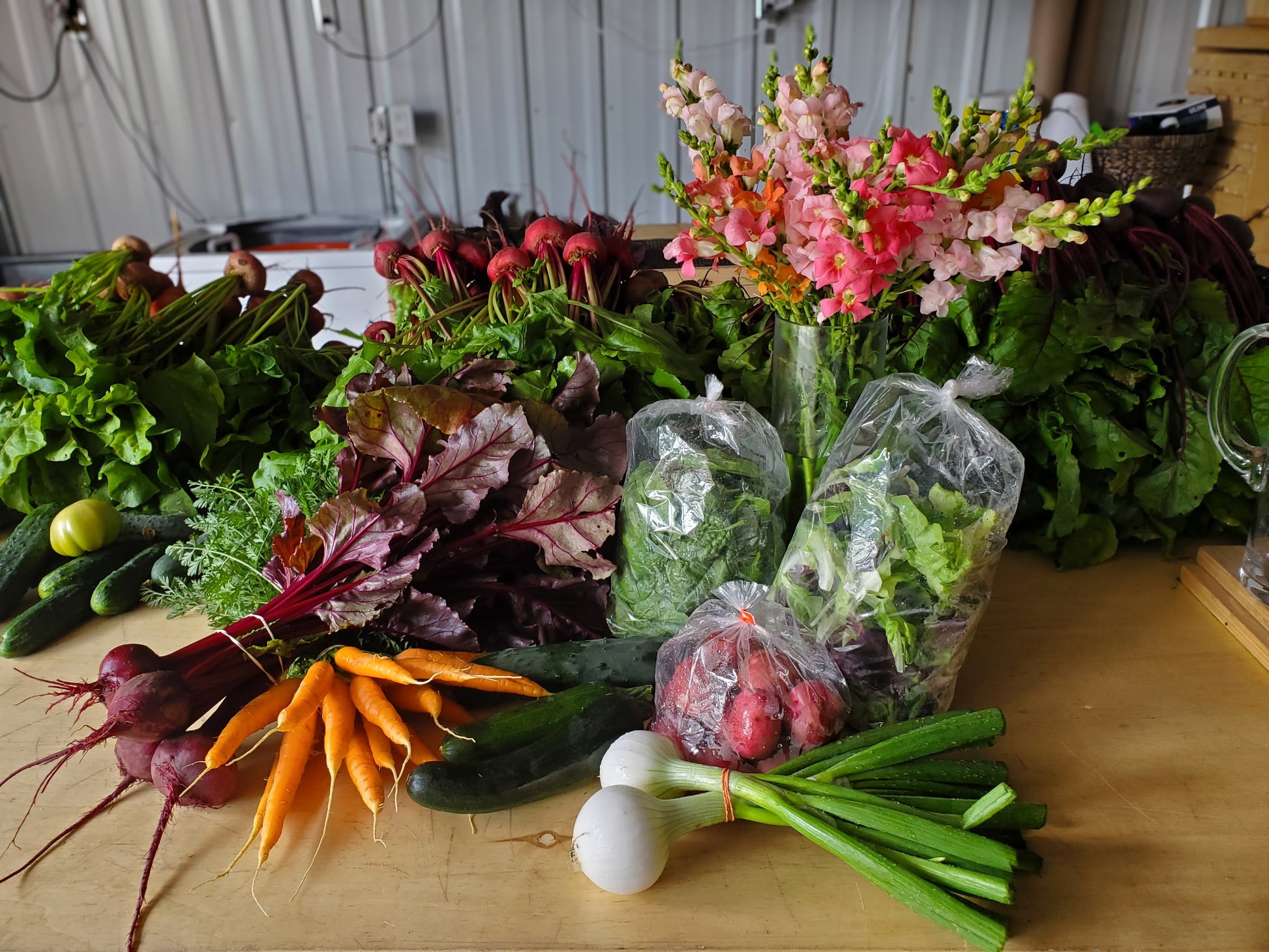 Our Market Bundle Subscription gives you our Summer Vegetable Subscription and our Market Bouquet every week for a discounted price!