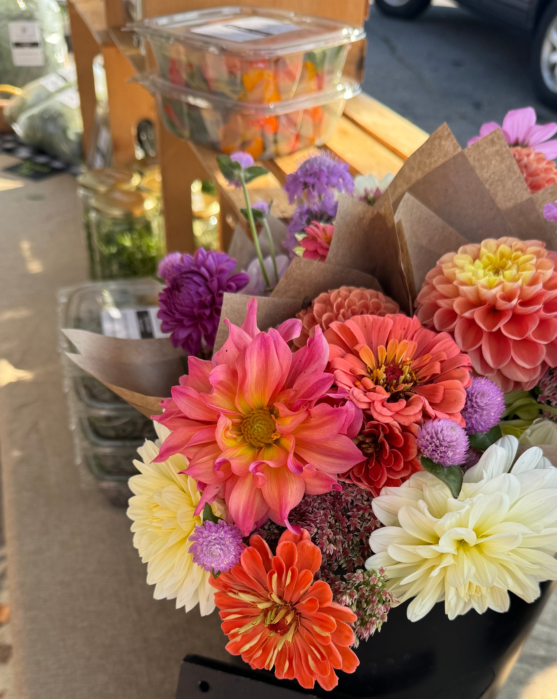 Seasonal cut flowers. Market bouquet orders, including subscriptions, will be a larger bouquets than our grab and go bouquets available at our in-person markets.